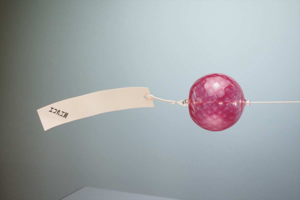原料のガラスは、資源ごみとして回収したビンなどを利用し、また、ごみ処理時の余熱を利用し発電した電気炉で溶かし製作しています。